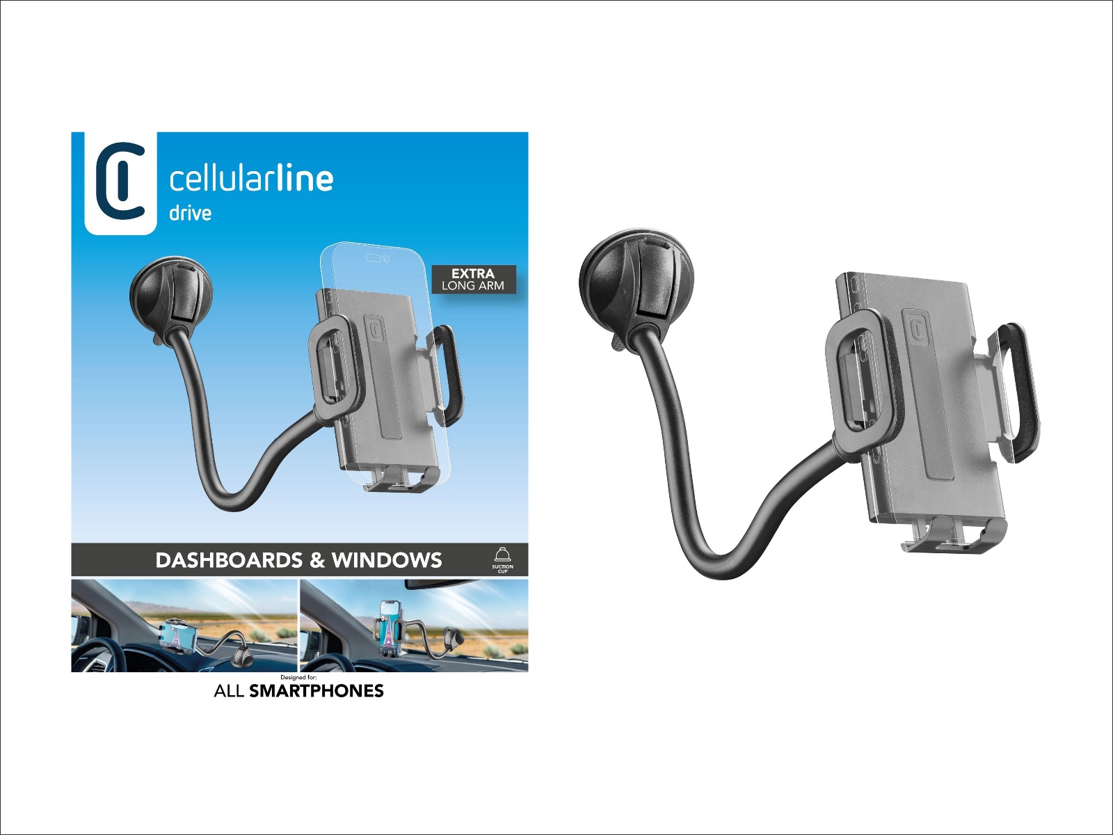 cellularline Pilot Techno Flexi Handyhalter Schwanenhals 360° drehbarer Saugnapf, extra-langer, bieg