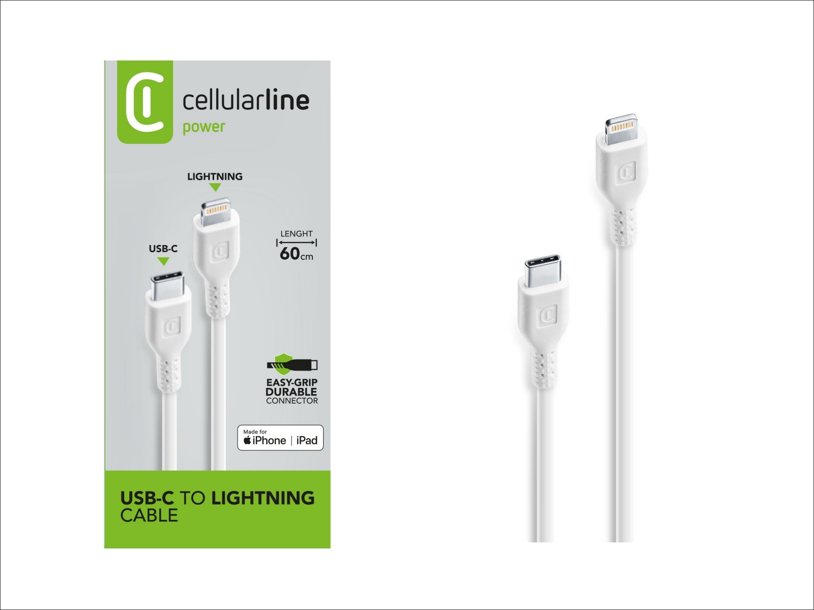 cellularline USB-C Kabel auf Lightning 0,6m, weiß